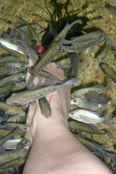 I lowered my feet into the pool in trepidation and hundreds of the little tiddlers immediately swam up and started sucking and nibbling on my heels, toes, arches and up my legs.