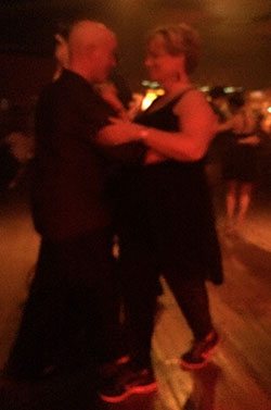 Then Gerry decided that I should put my lesson into practice and off we strode – into the middle where I was sure my tragic shoes would not be seen. He coached my every move and before I knew it I was tangoing!