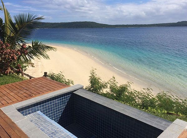 This is Vanuatu luxury with your own plunge pool in some villas, right on the beach.