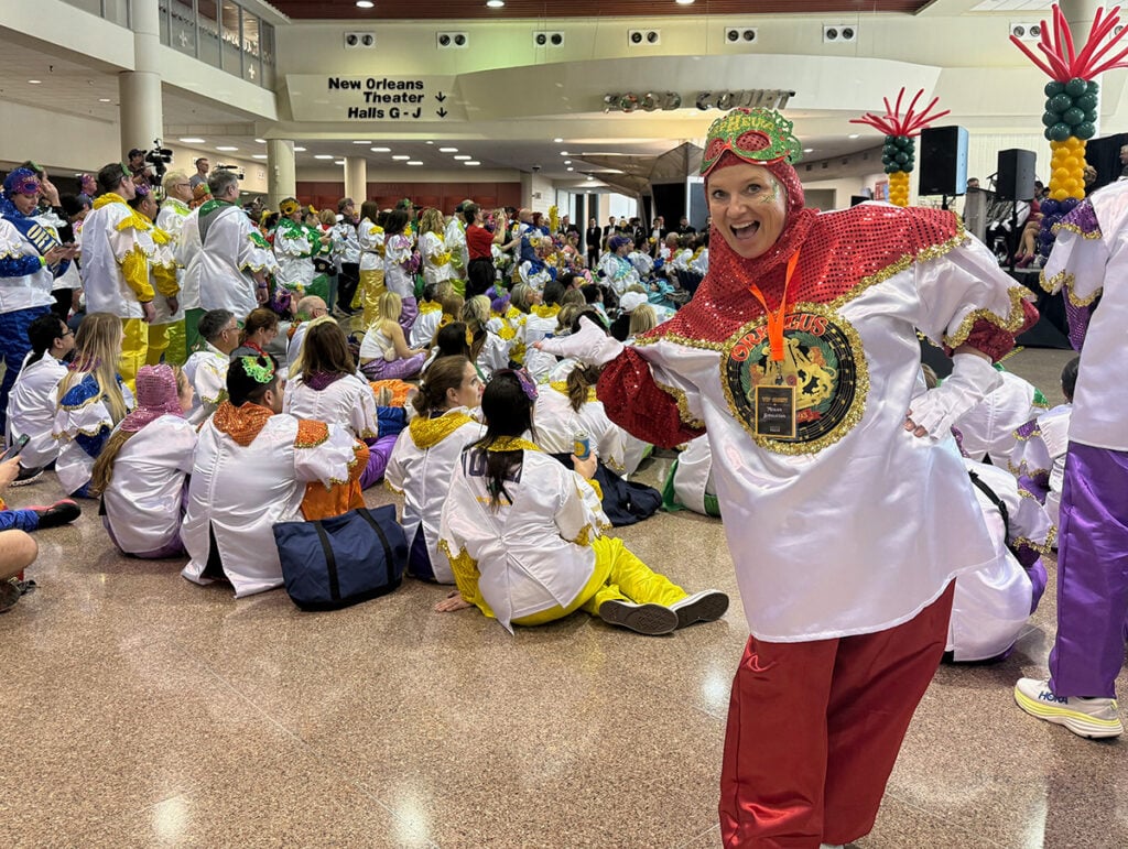 Ideally you’d rent a house on St Charles. That would be my top suggestion. I met a couple of women who’d driven from Ohio with a group of friends. They were smack dab on the parade route, they had beach chairs, and could pop back inside for toilet breaks and to refresh their Yeti cups. Be prepared to pay silly money however.