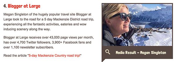 I have spent three years writing and delivering workshops to help destinations, brands and tourism operators grow their business and their bottom line. These include: Hosting Media to Get What You Want, Blogging Training, How to Work with Bloggers and Influencers, Demystifying Content Marketing and Social Media, How to Write Like a Thought Leader, Social Media Strategies After a Crisis. For more details on these training programs, click on my training site here >> megansingleton.co.nz