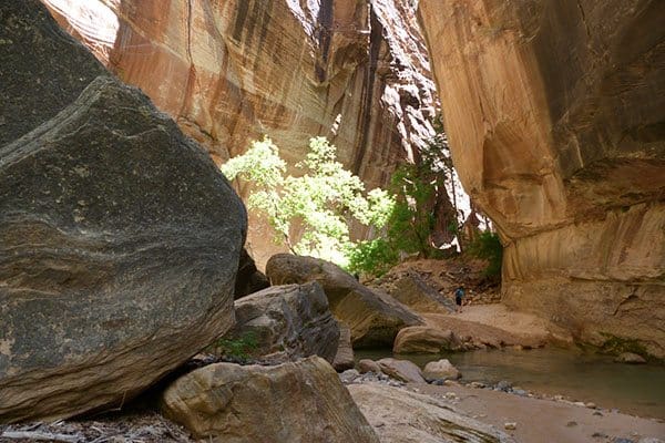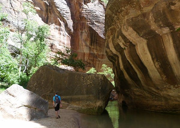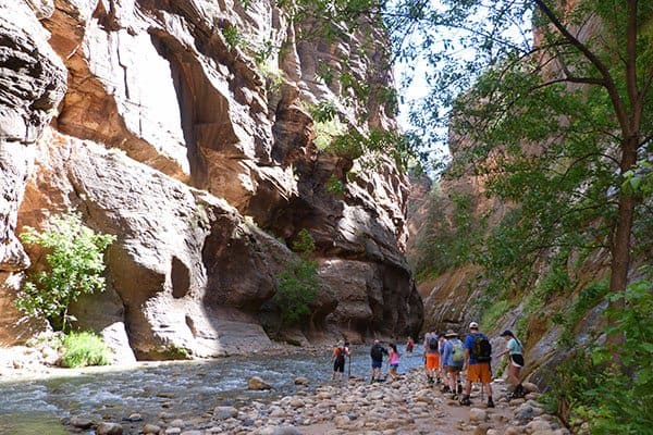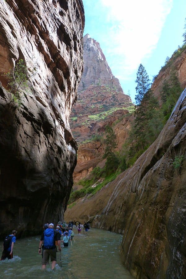 You can start at the top and hike down in a day. It’s a 16-mile hike and you need a permit, or do what most of us did and start at the bottom at the Narrows, hiking up till we felt we’d seen enough and turn around and walk back down with the river.