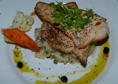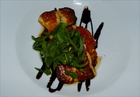 This photo doesn’t do the chicken justice. It’s honey, cardomom & pistacio crusted on a strawberry polenta