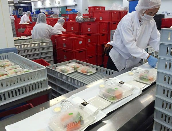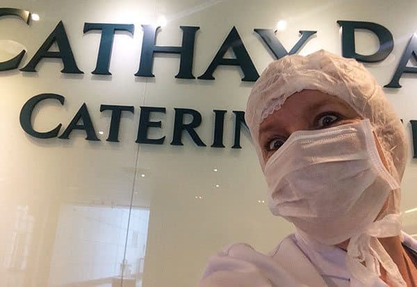 When I was offered the chance to don a white coat, wrap my face in gauze and scrub in to peep behind the scenes at Cathay City in Hong Kong, I jumped at the chance. It’s not often a girl gets to see (and take her camera!) into the hallowed halls of airline foodery to do her own inspection.