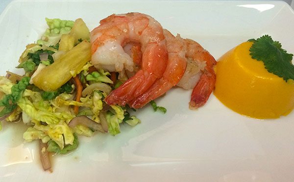 Cathay’s kitchen also makes food for several other airlines, but today I was more fascinated by the technology of their own robotic tray assembly thanks to a locally designed and made computerised system and to see how the raw materials end up in the trolley on my flight.
