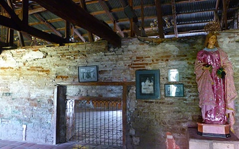 San Guillermo, the parish church of Bacolor, is still a place of worship, only now you enter through what was formerly the upper windows where saints once stood and the bell tower on your left is only 5 steps above the floor.
