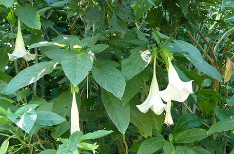 The ironically named Angels Trumpet (Brugmansia x candida) which can cause blurry vision, dizziness, hallucinations and even death. I was told some stupid young people around here take it anyway…