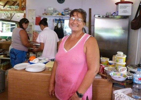 The Tahitian ladies are busy as bees in the kitchen and Fara reluctantly let me take her photo as we left, exclaiming her abilities.