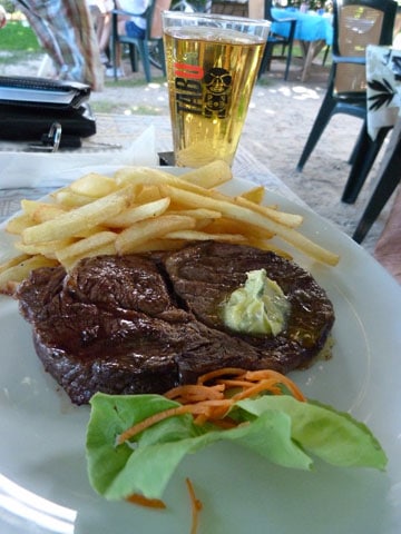 The Bloke had the steak. The beef in Tahiti is also highly recommended. Most of it is export quality New Zealand beef – and cheaper than we can buy it for at home! It came with a knob of garlic butter and was perfectly cooked medium rare and tender. Same price as the mahi CFP 1600 or US$17.