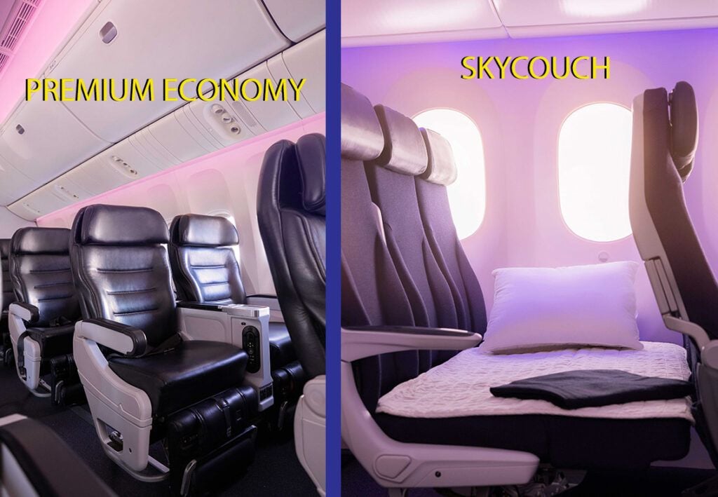 As you’ll see it’s cheaper to fly Premium Economy on this flight. And in the few that I looked at, the cost difference is around NZ$1000 between Economy class and Premium Economy v $1200 for the Skycouch. (Sometimes Premium is a lot more, depending on season and demand).