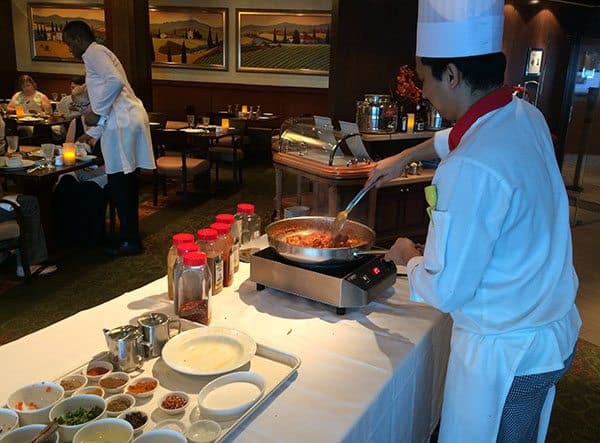Demo classes: This was listed as an Indian cooking class, but the nice surprise for me was that not only had the chefs done the prep, but they had set up their cooking station in one of the restaurants and did all the cooking themselves, showing us how to do it and providing us with the recipes. Then we ate it!