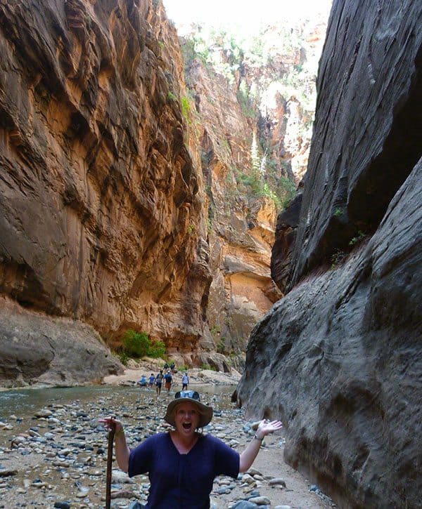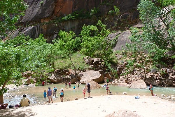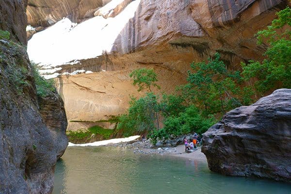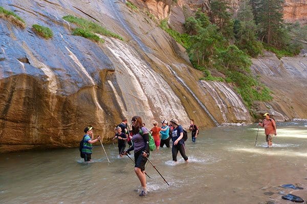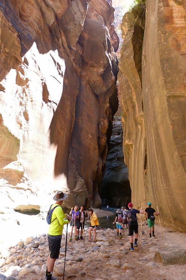 You can start at the top and hike down in a day. It’s a 16-mile hike and you need a permit, or do what most of us did and start at the bottom at the Narrows, hiking up till we felt we’d seen enough and turn around and walk back down with the river.