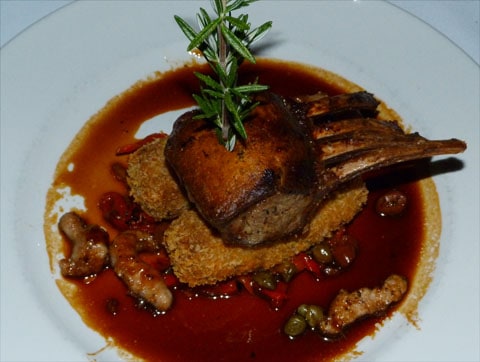 This photo doesn’t do the chicken justice. It’s honey, cardomom & pistacio crusted on a strawberry polenta