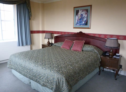 The bedroom above is in the new wing built in 2005 and below is a traditional room in the original building above the ball room. (I liked the new wing with modern bathroom better).