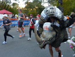You will literally run through a big game reserve in South Africa with nothing to separate you from the elephant, rhino, buffalo, lion and leopard. No fences, no rivers, just you and your Nikes. This marathon is so popular you need to register a year in advance.
