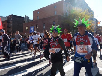 The marathon race starts on Staten Island, then you’ll cross the bridge and run through Brooklyn, Queens, over to Manhatten and up to the Bronx, before doubling back on yourseld to the finish line in Central Park, as two million spectators cheer you on.