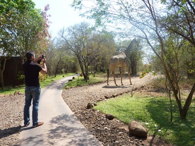 There is a path leading to the falls from the resort and if you walk quietly enough you’ll be able to get wonderful photos of grazing giraffes – and other wildlife. At the entrance to the falls (free admission for resort guests) is a craft market full of local handicrafts. I bought a big wooden platter from Alick, who carved his name into the base for me.