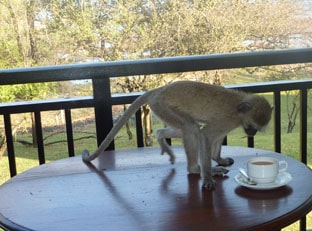 It may be a national park, but they can just swim on by thank you very much. We are warned to keep our doors closed at all times because many a guest has had their room ransacked and stuff stolen (including a designer shirt) by cheeky monkeys.