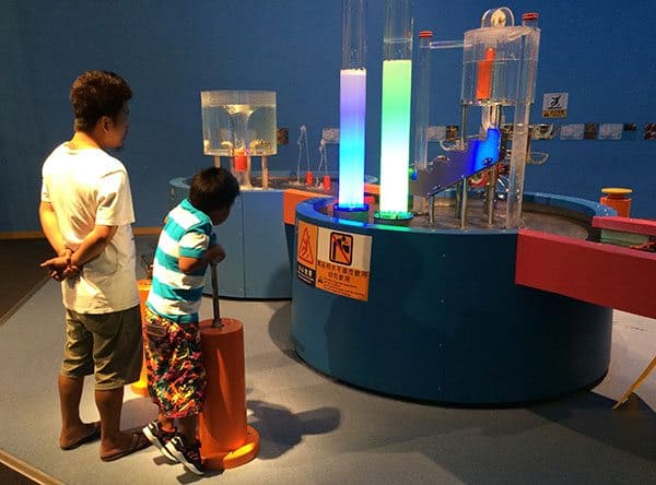 You start by taking the elevator to the top floor and spiral your way down its 14 galleries with hands-on exhibits.